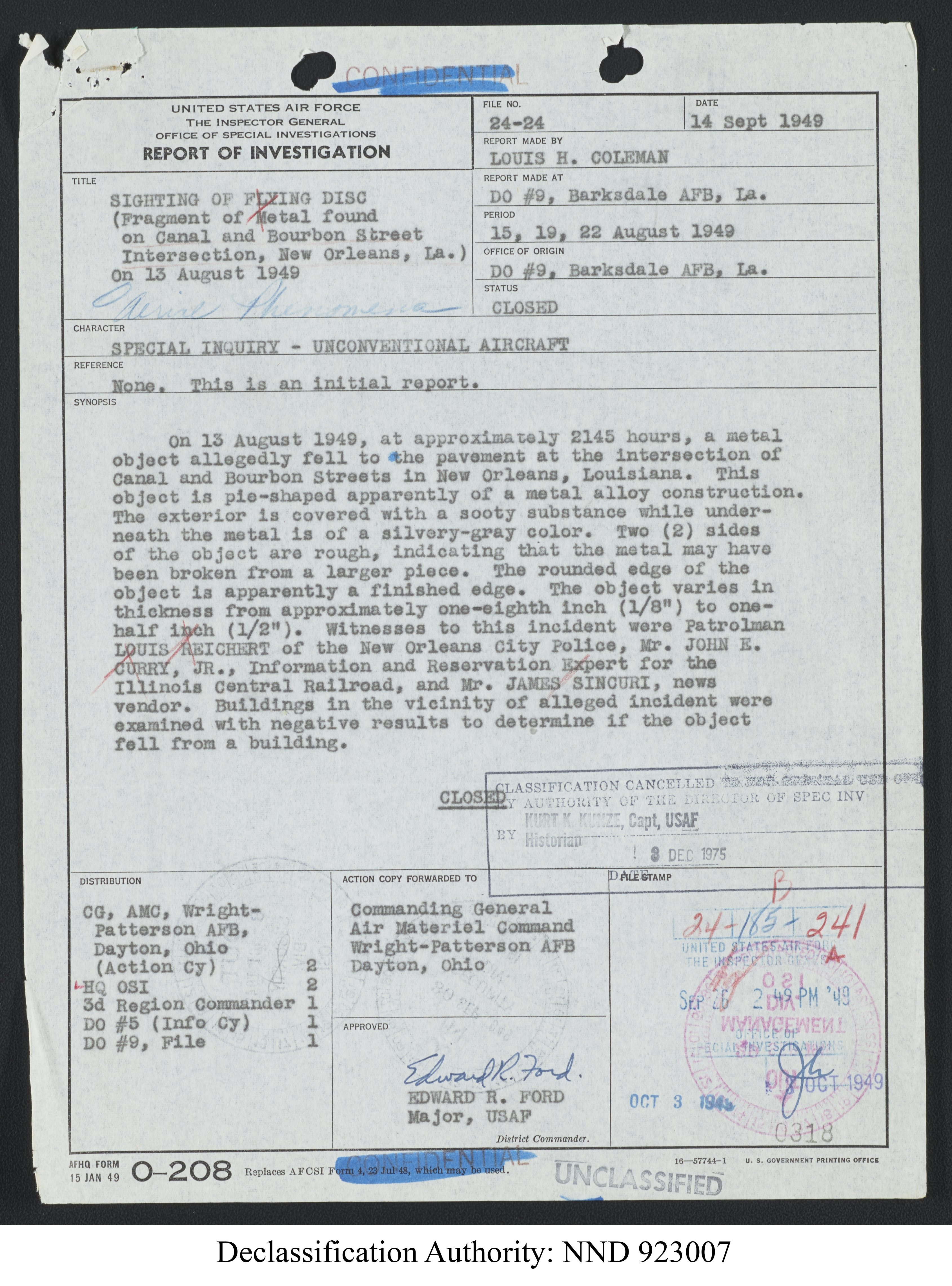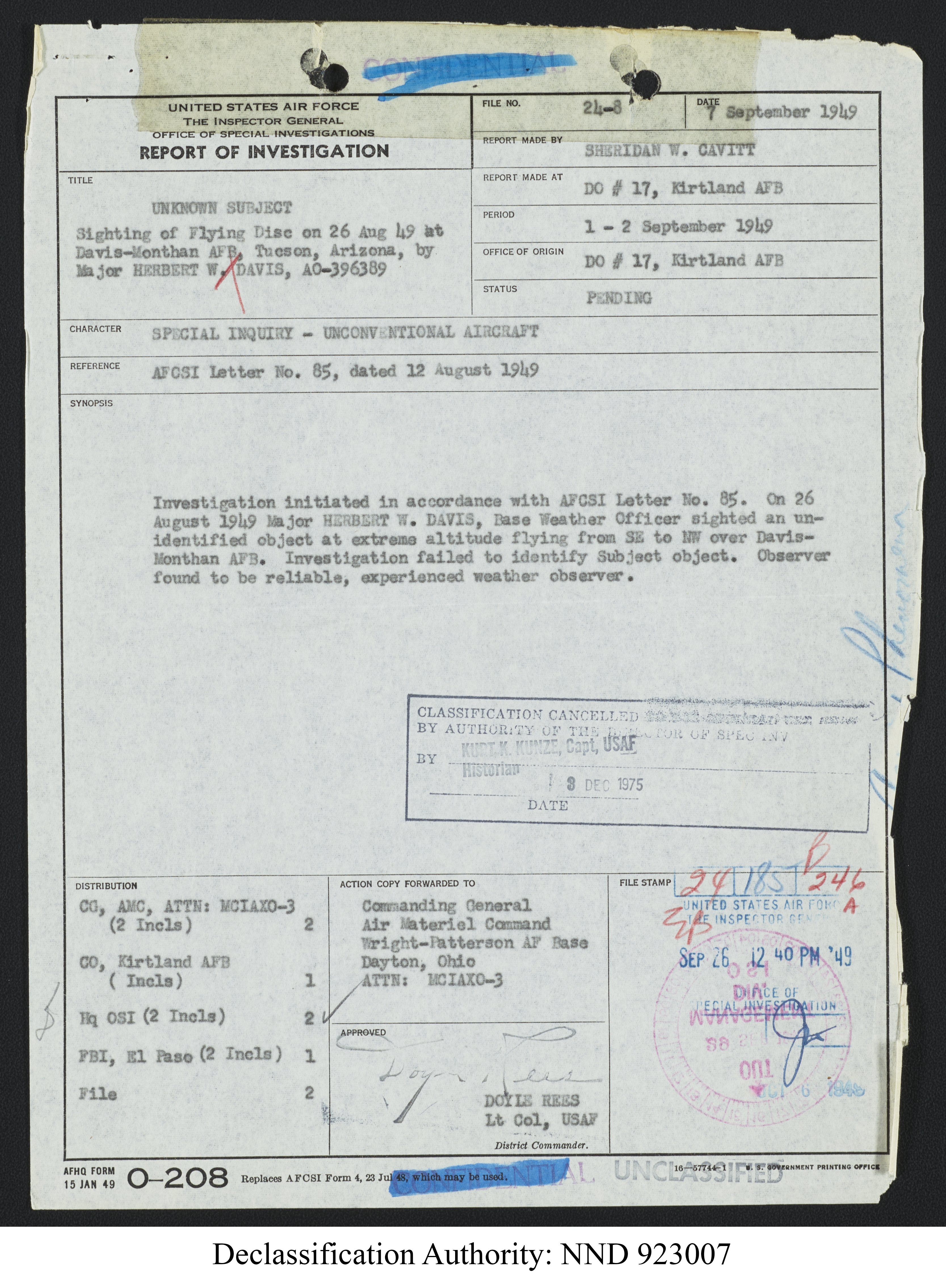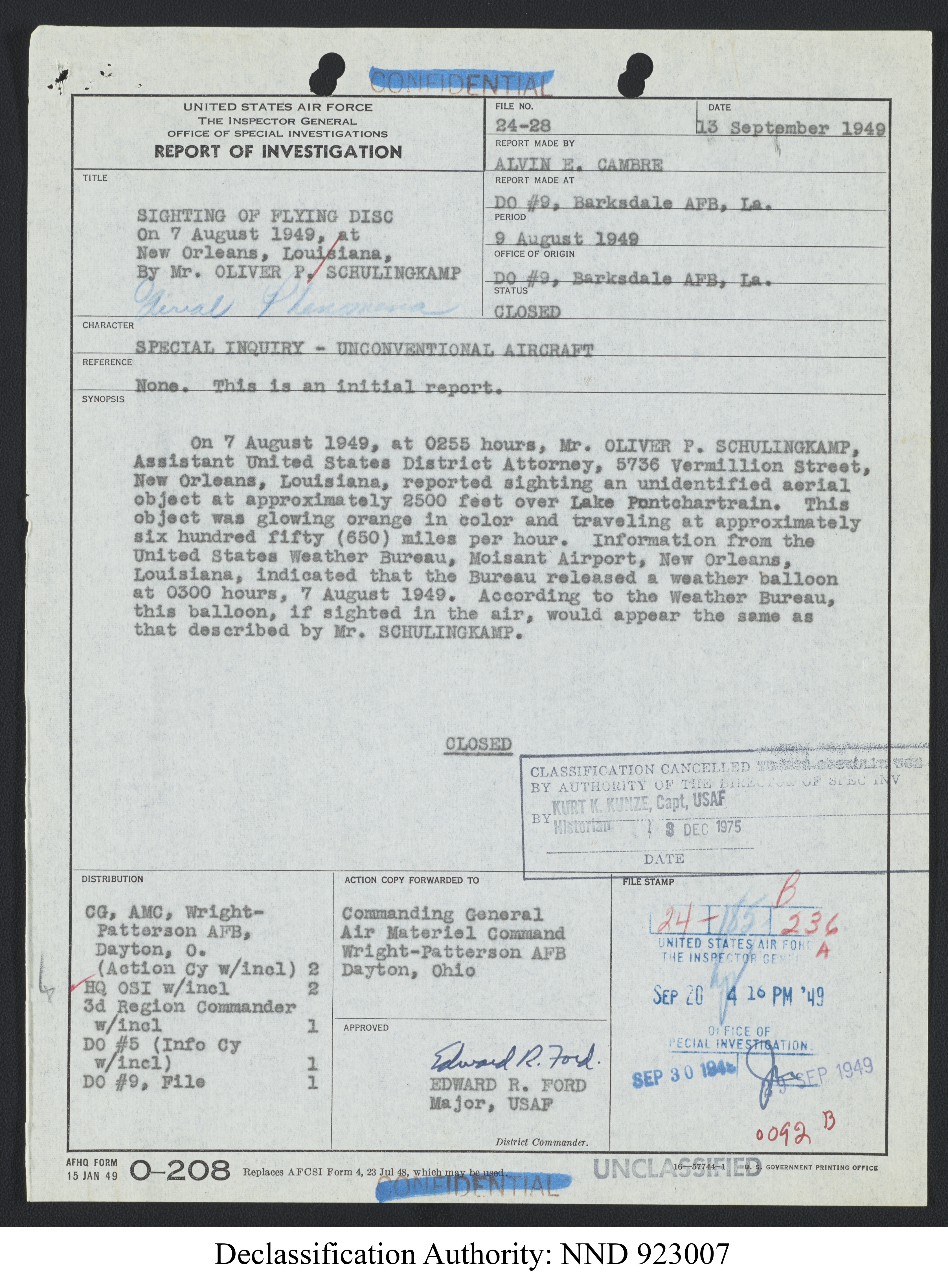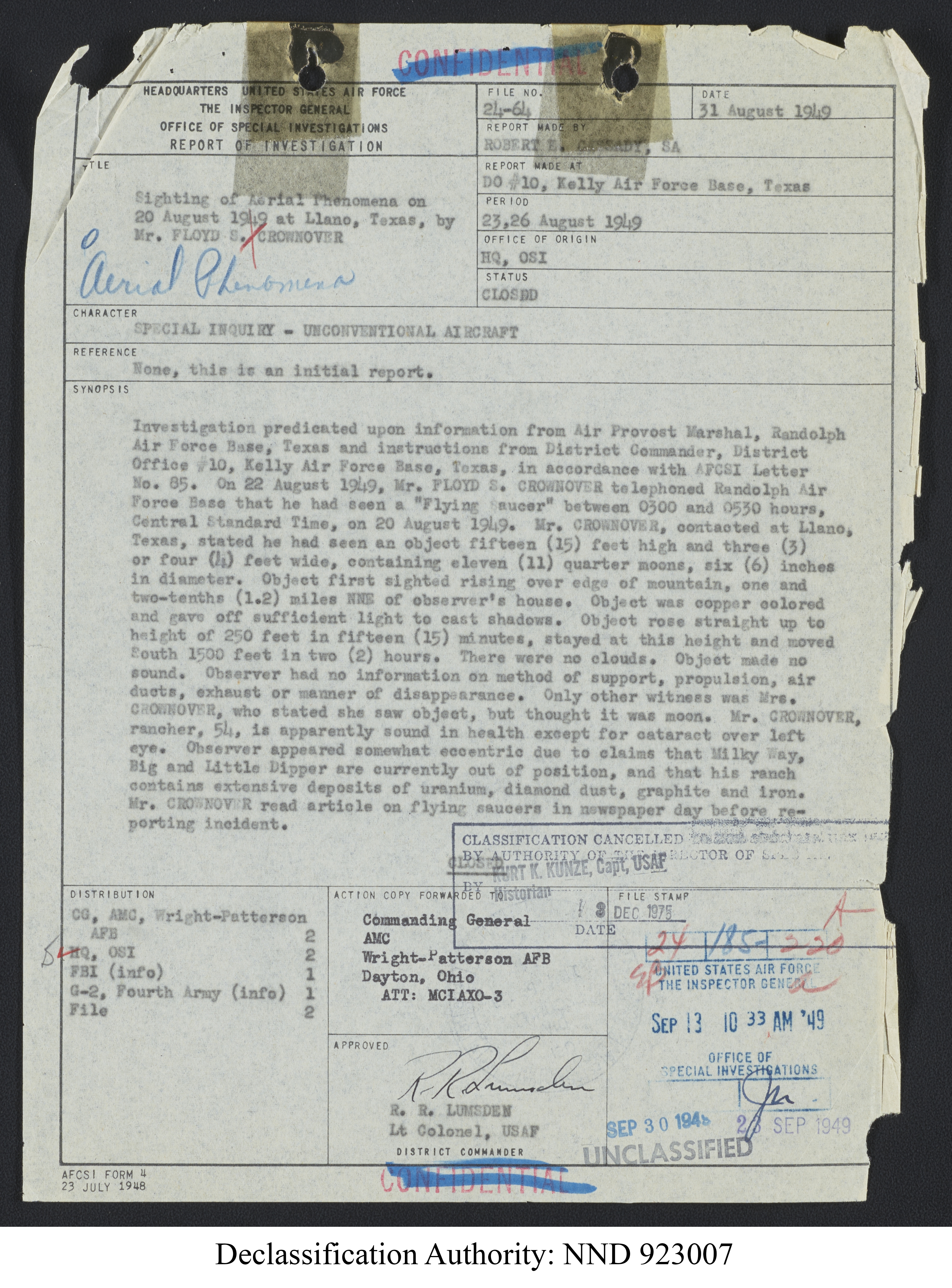 Browse and download declassified UAP investigation files