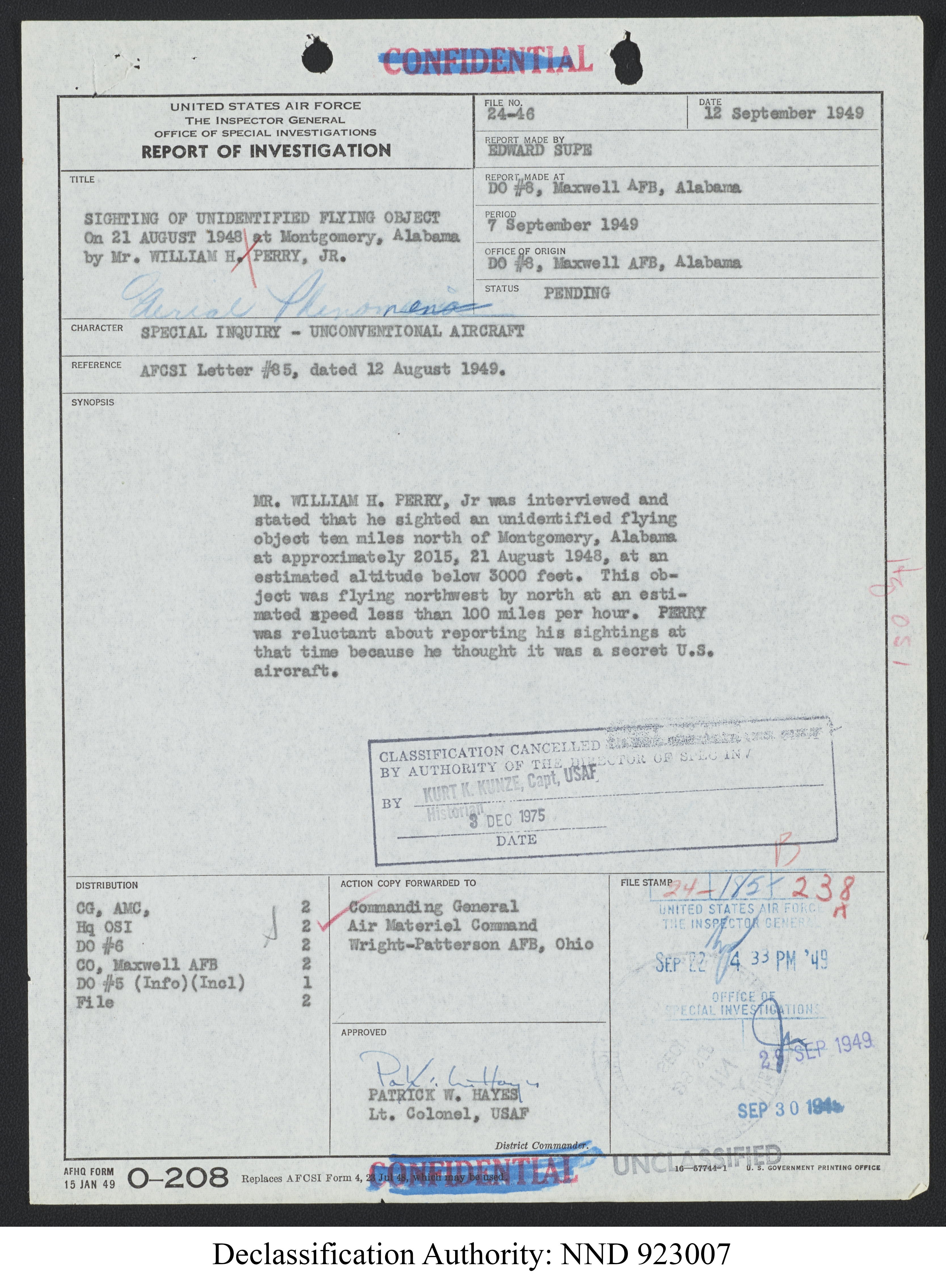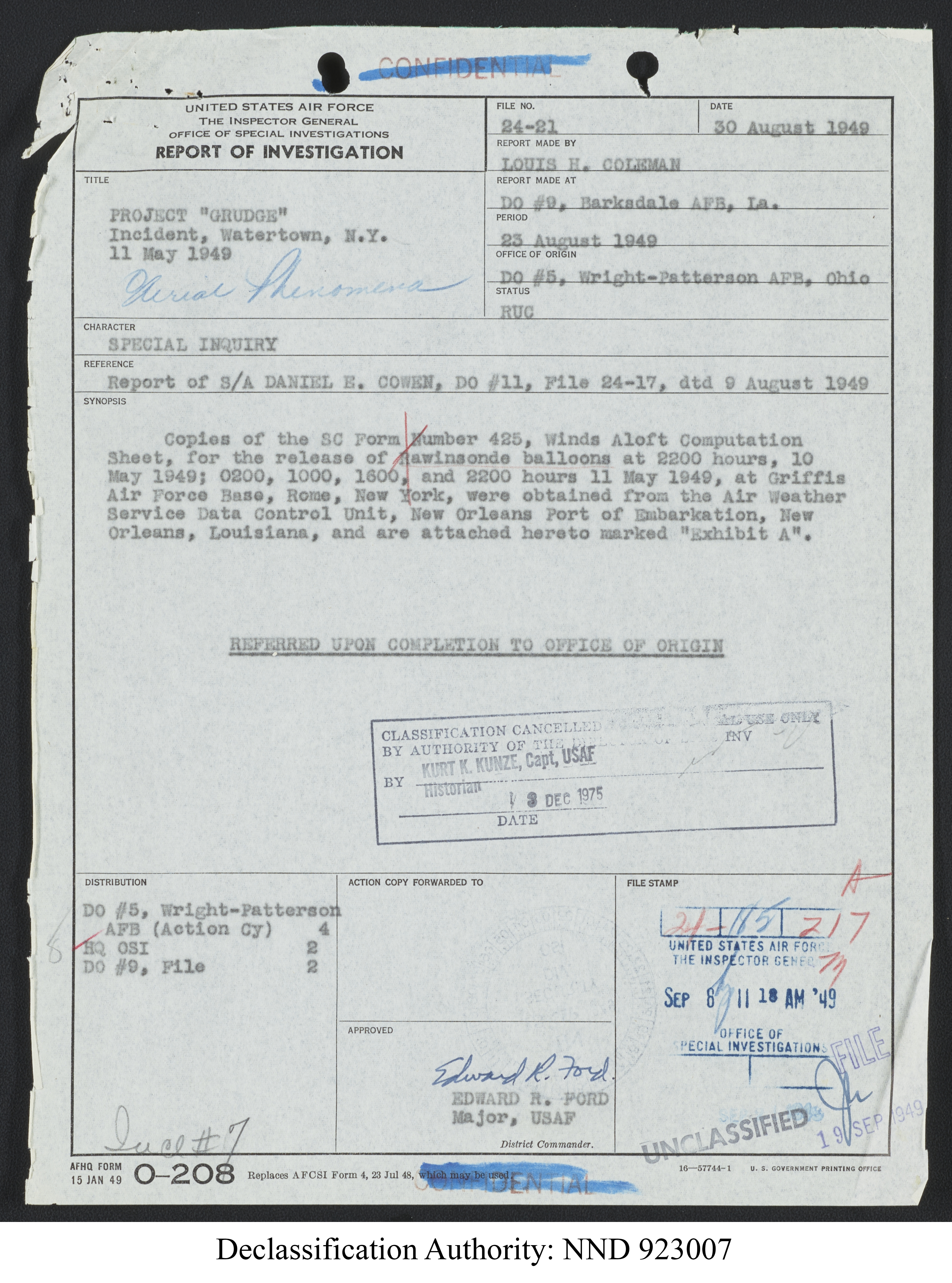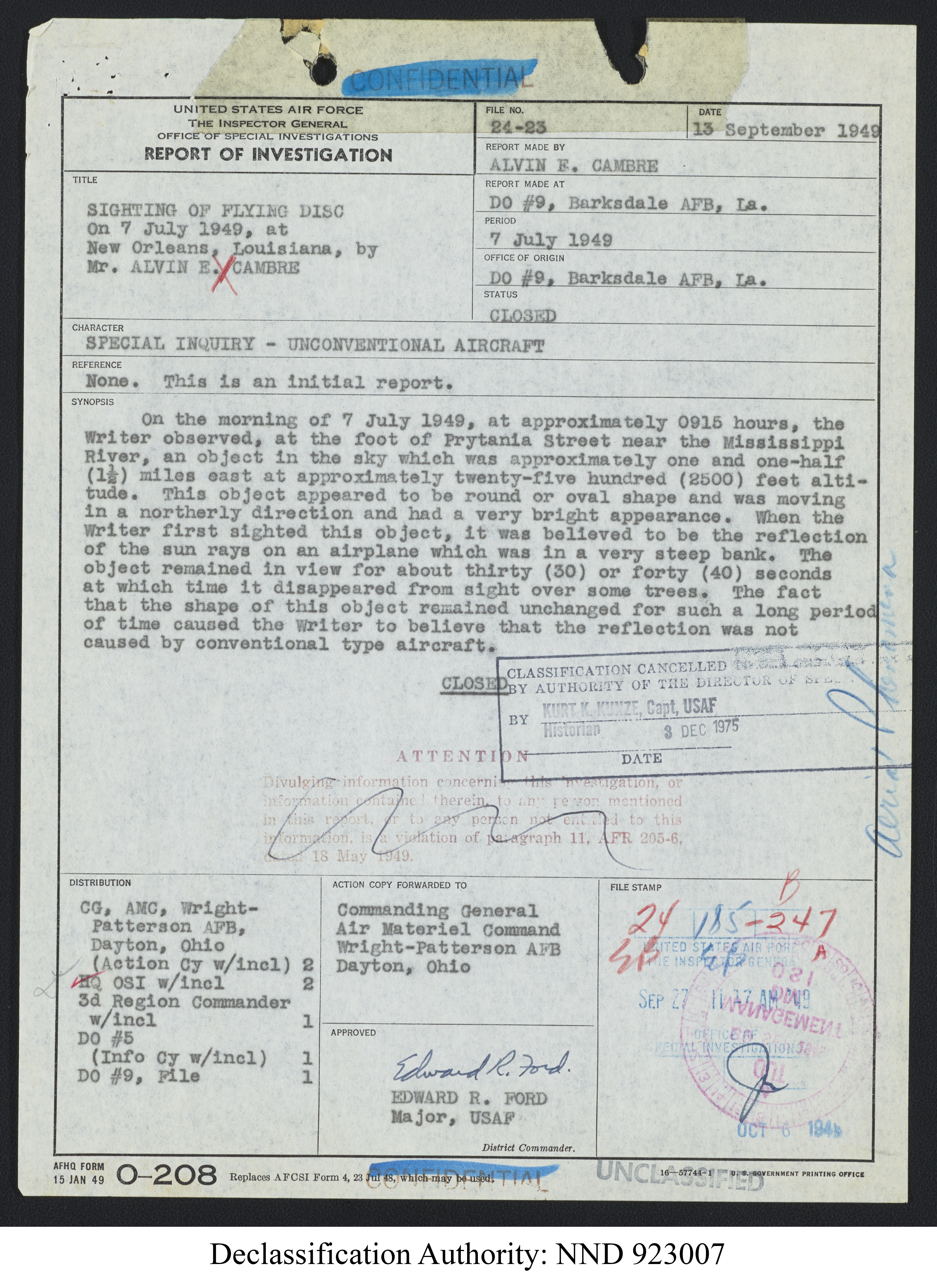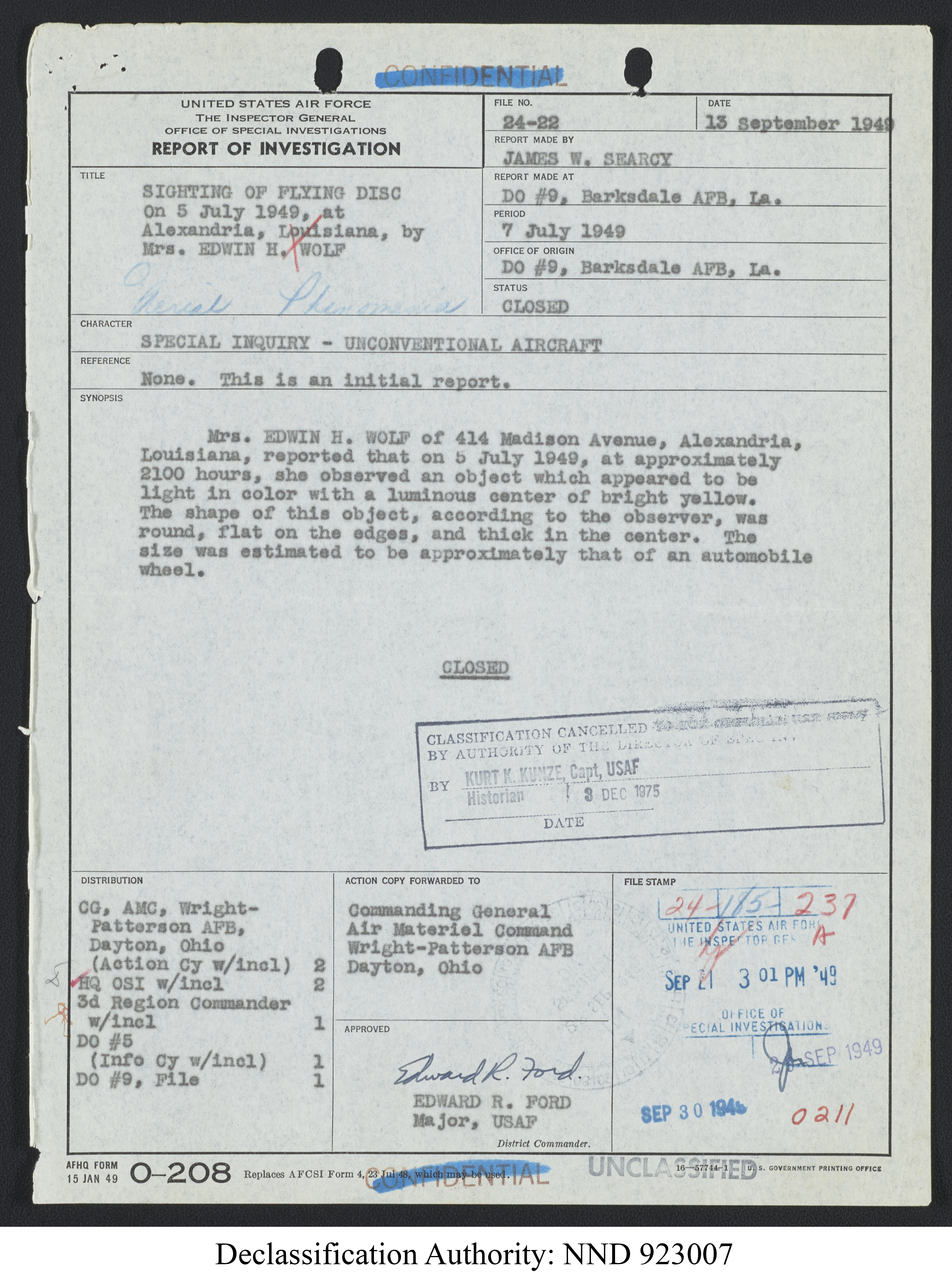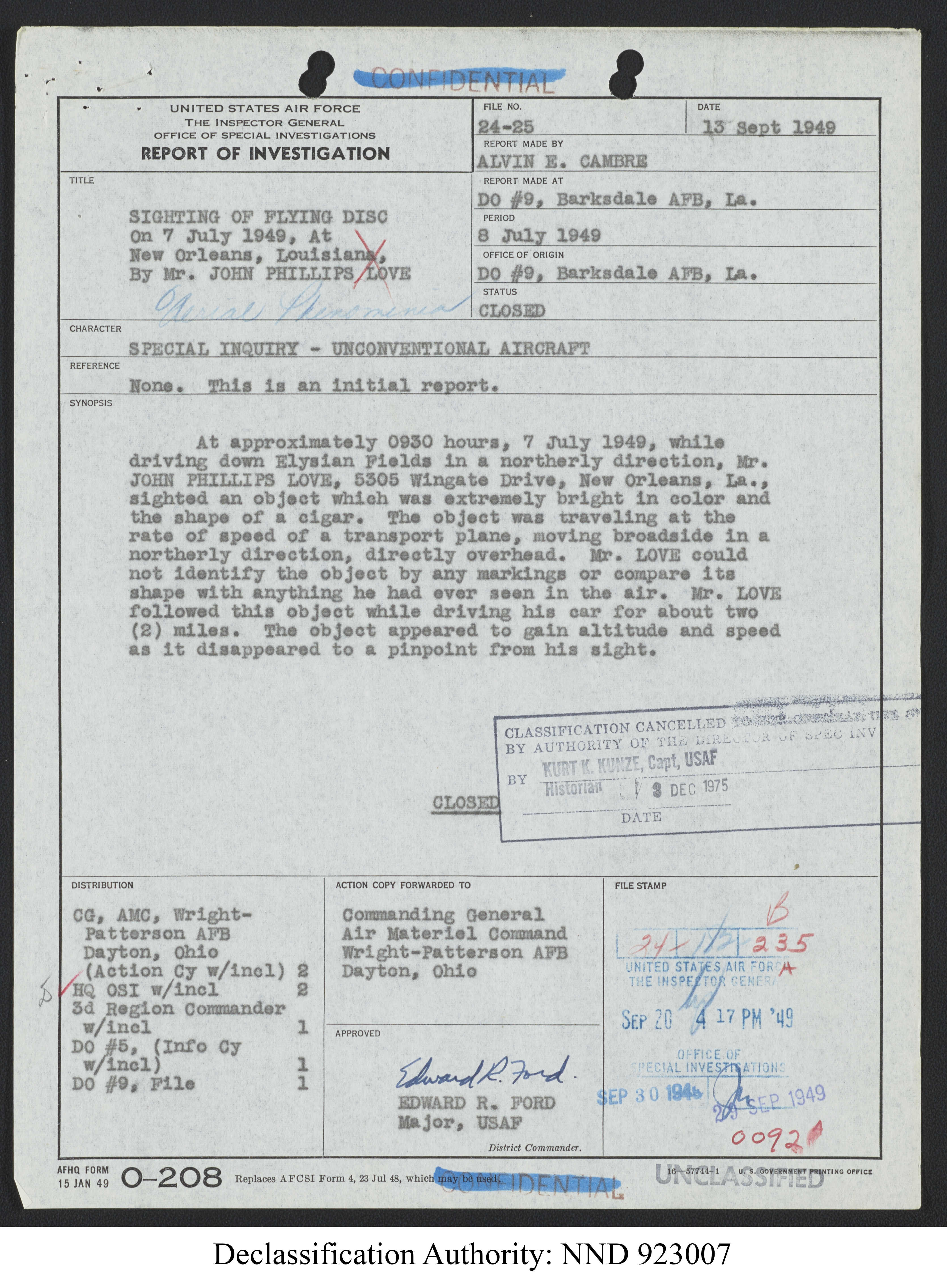 Browse and download declassified UAP investigation files