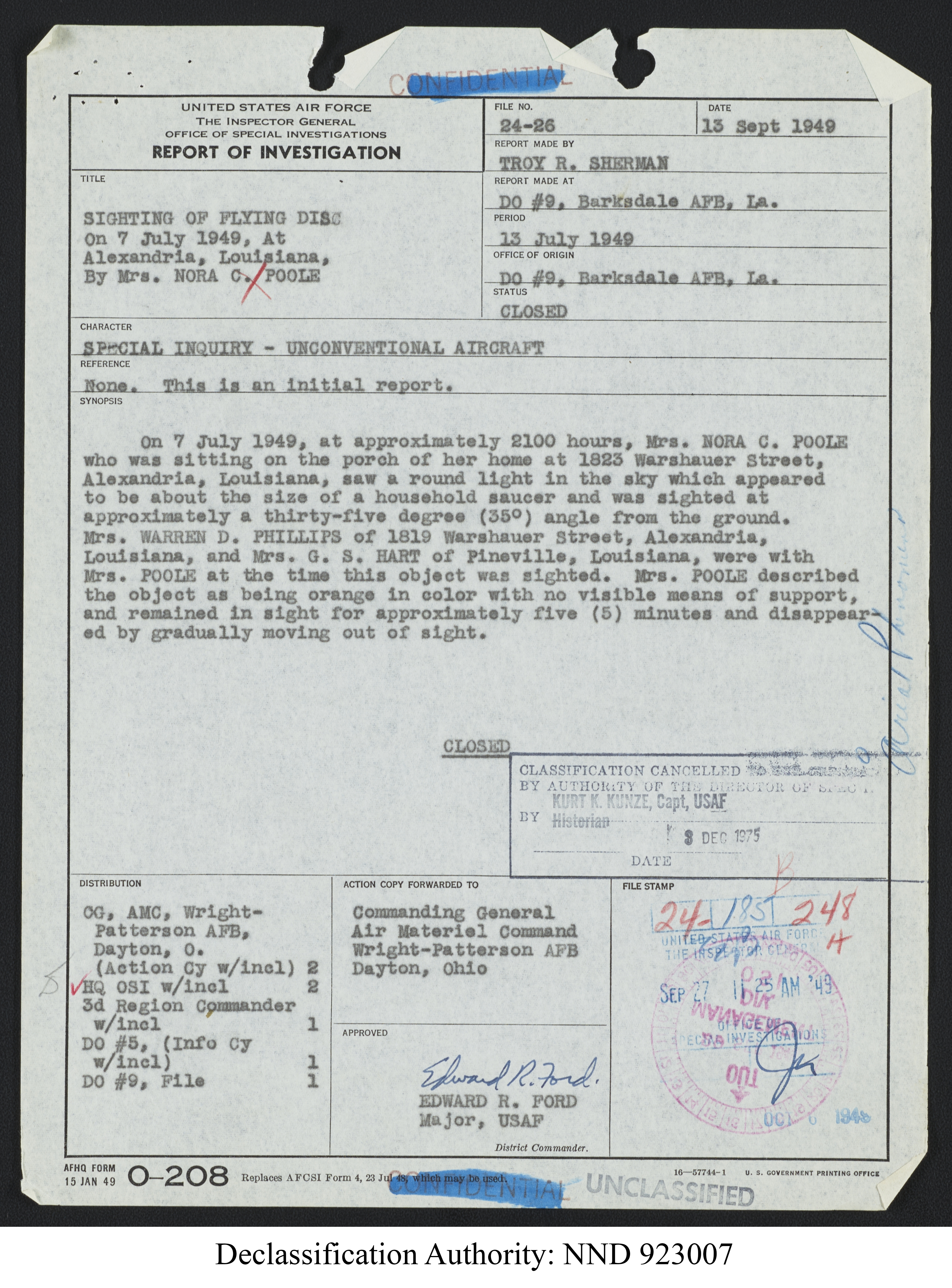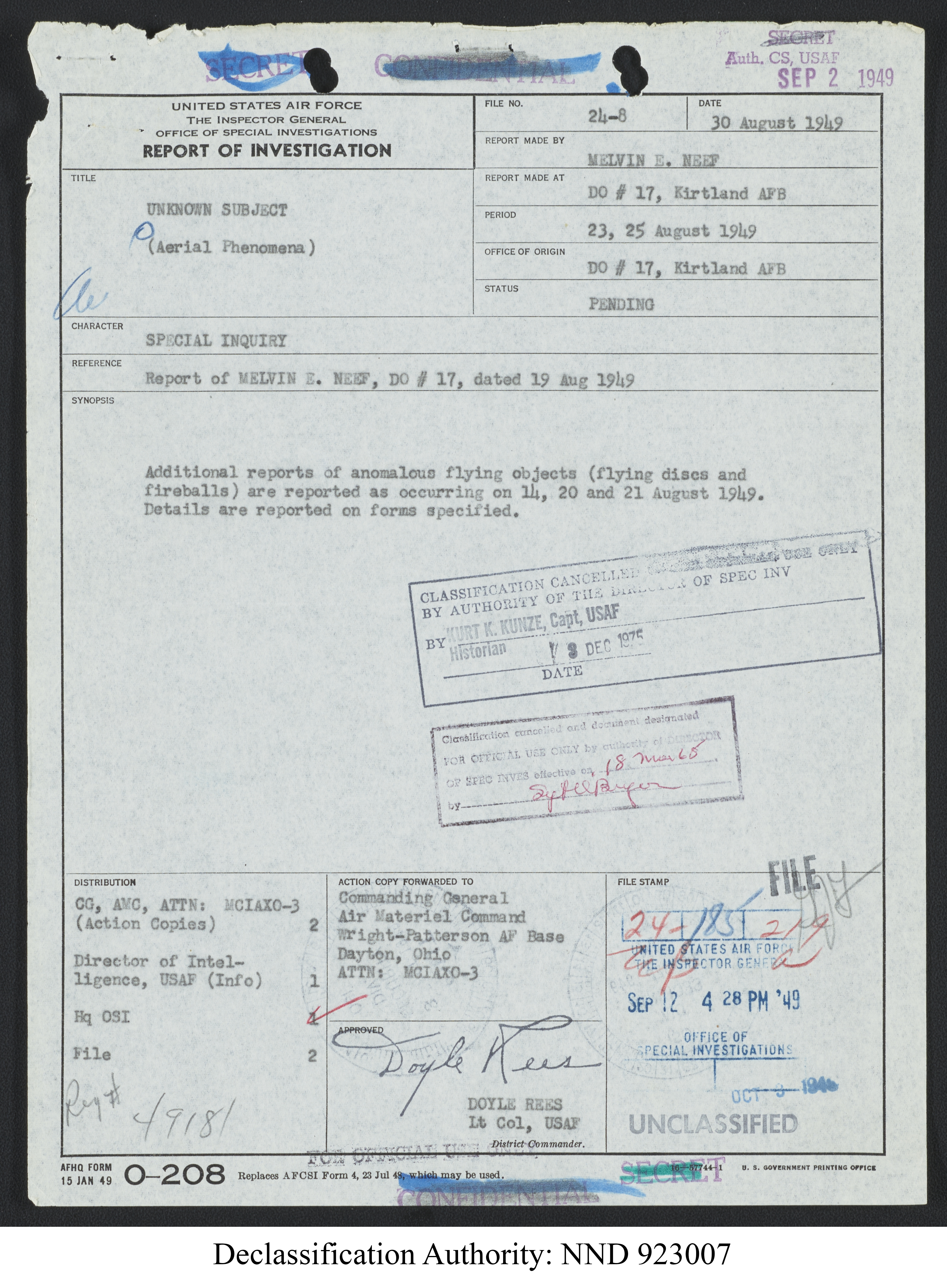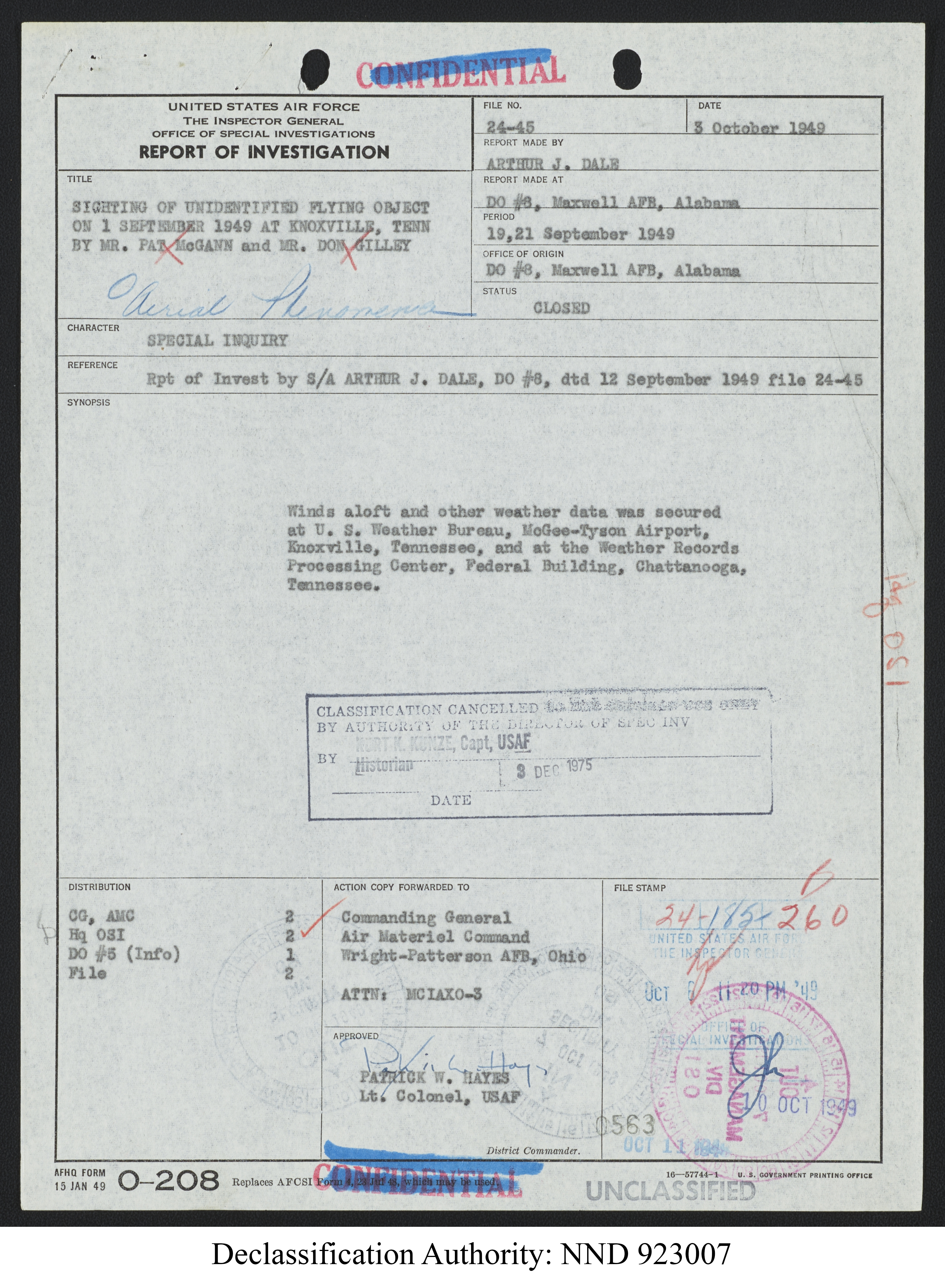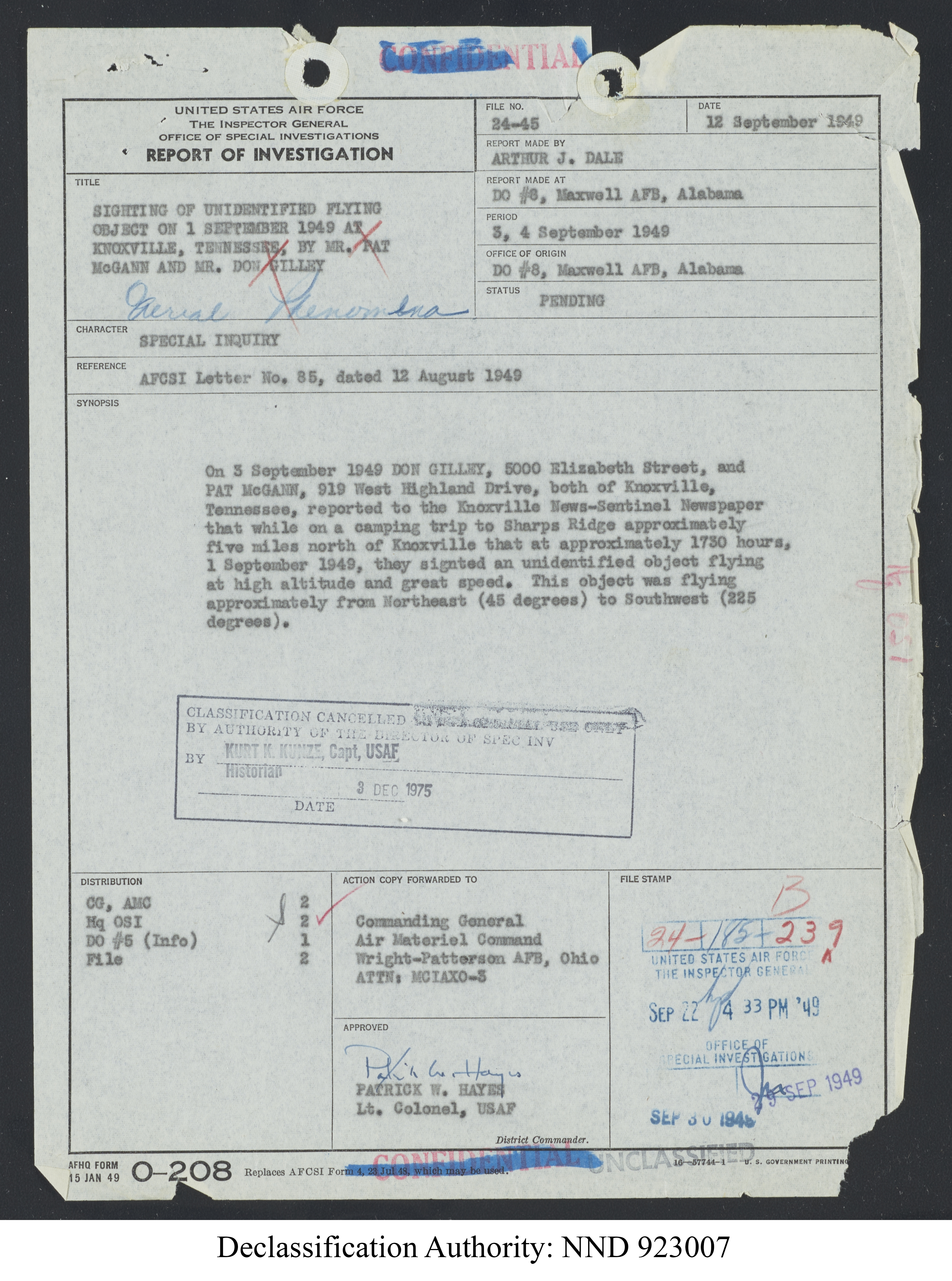 Browse and download declassified UAP investigation files