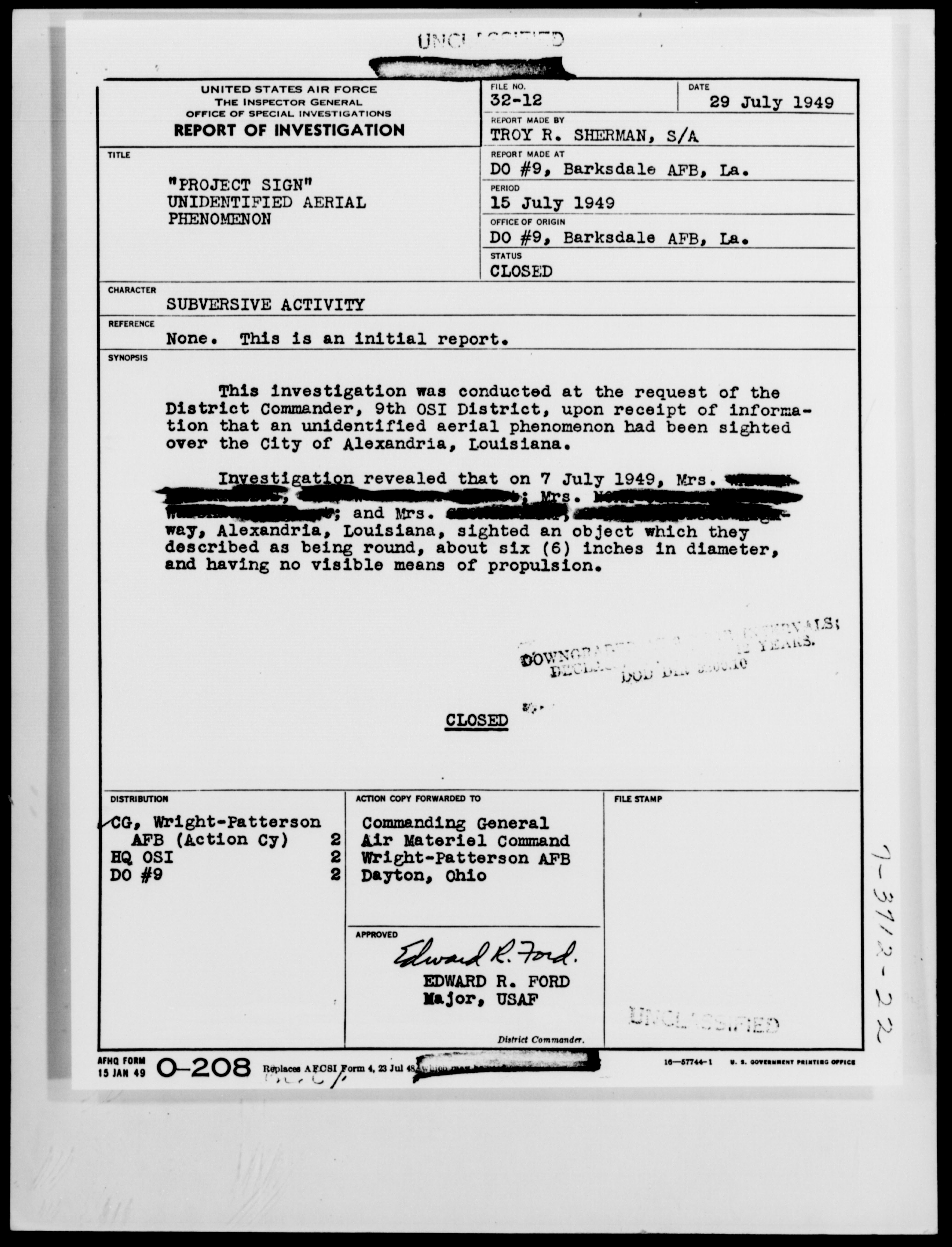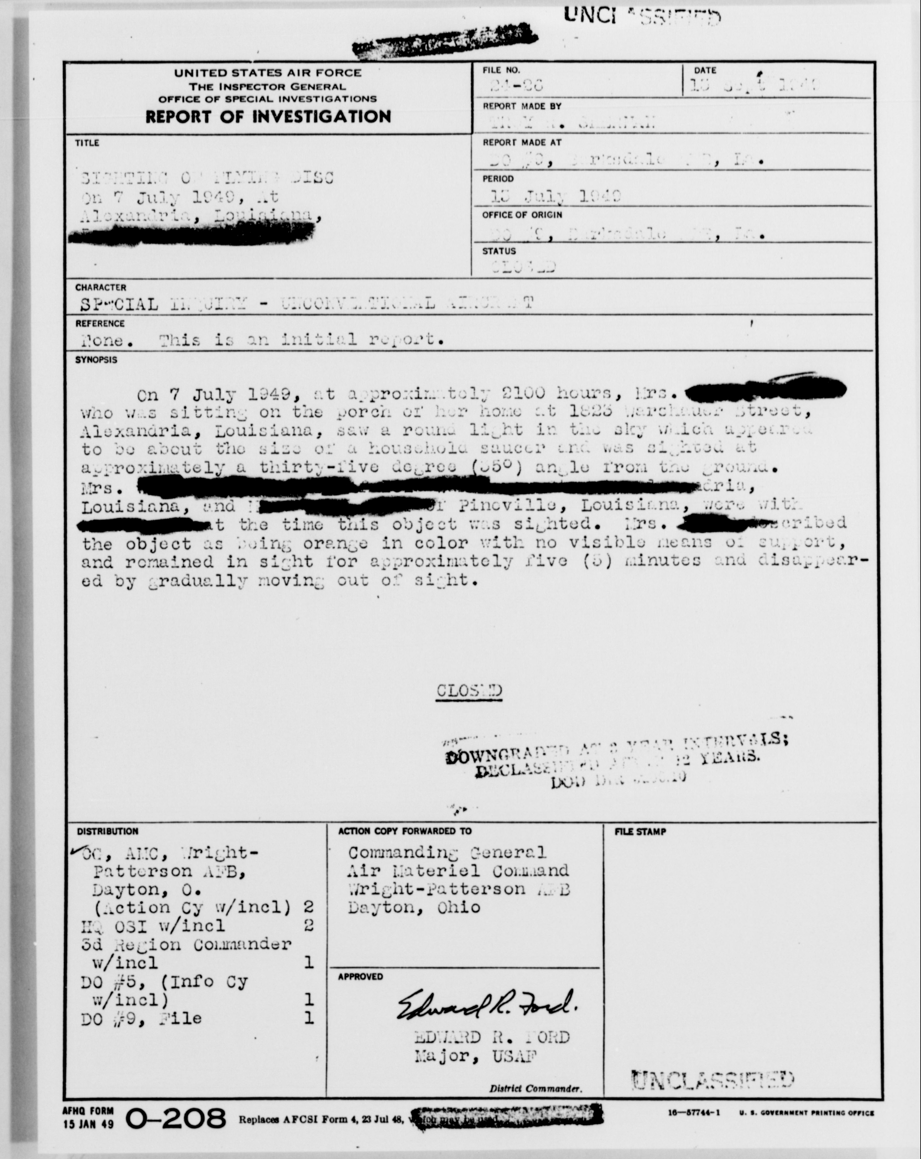 Browse and download declassified UAP investigation files