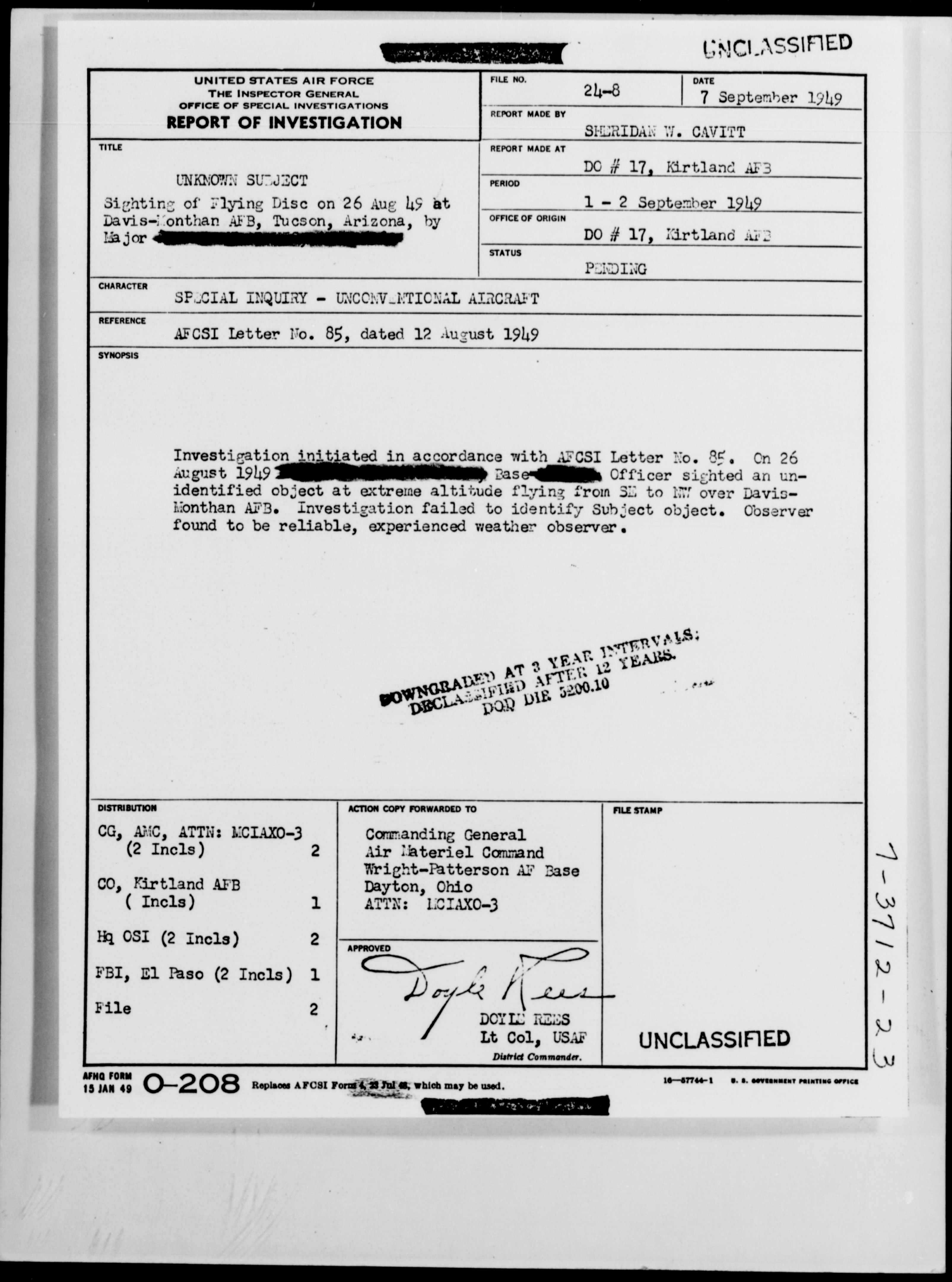 Browse and download declassified UAP investigation files
