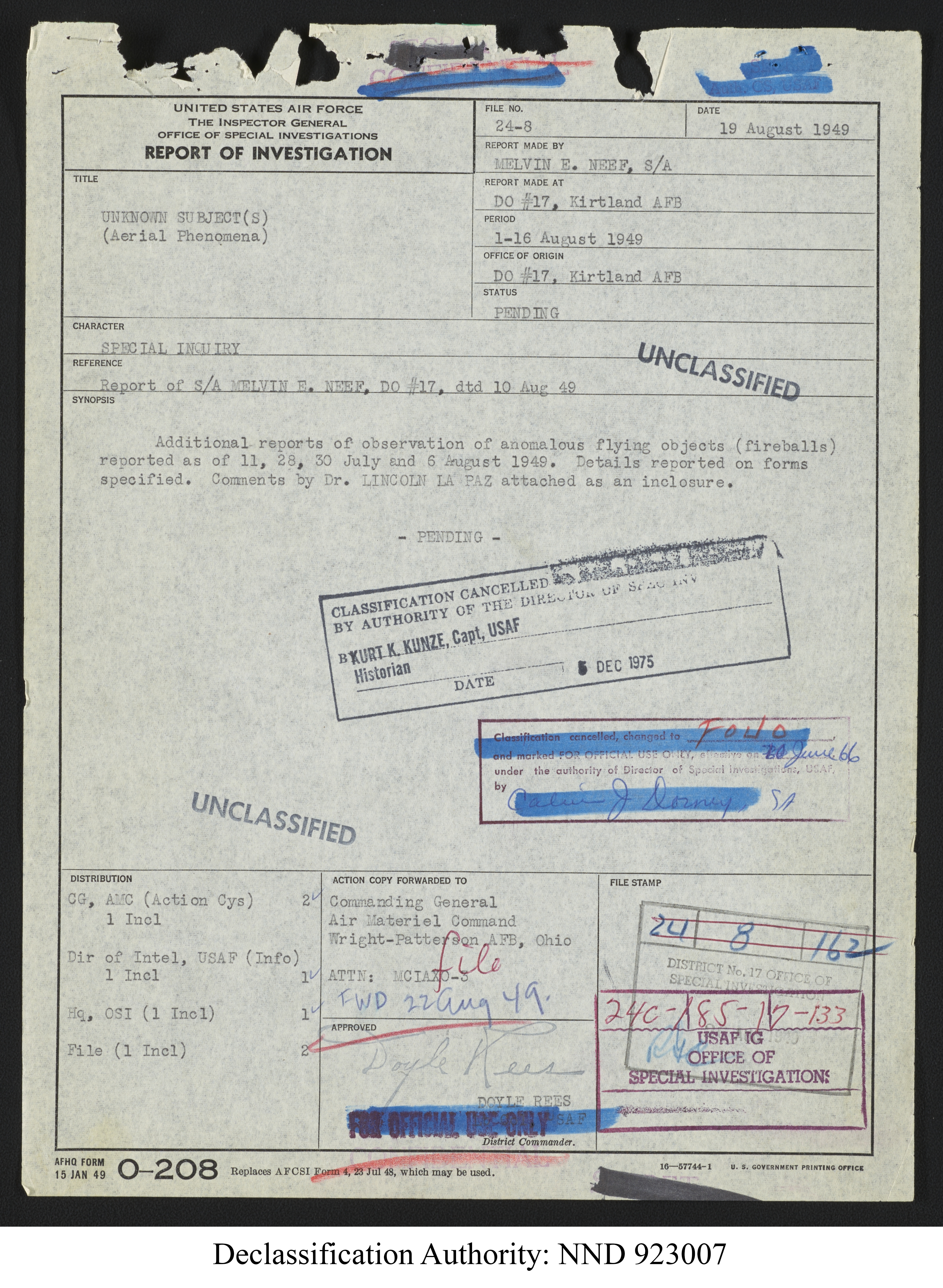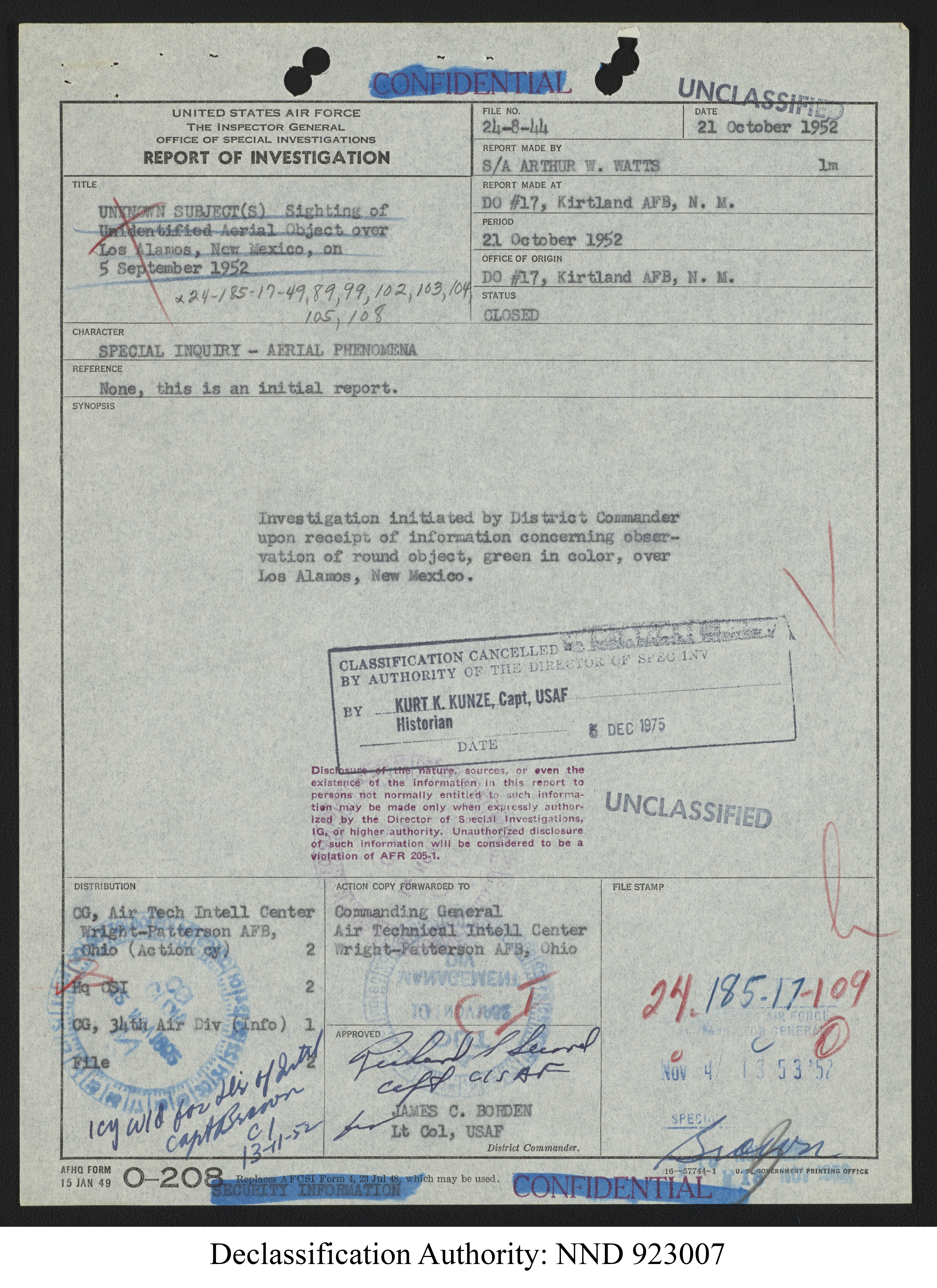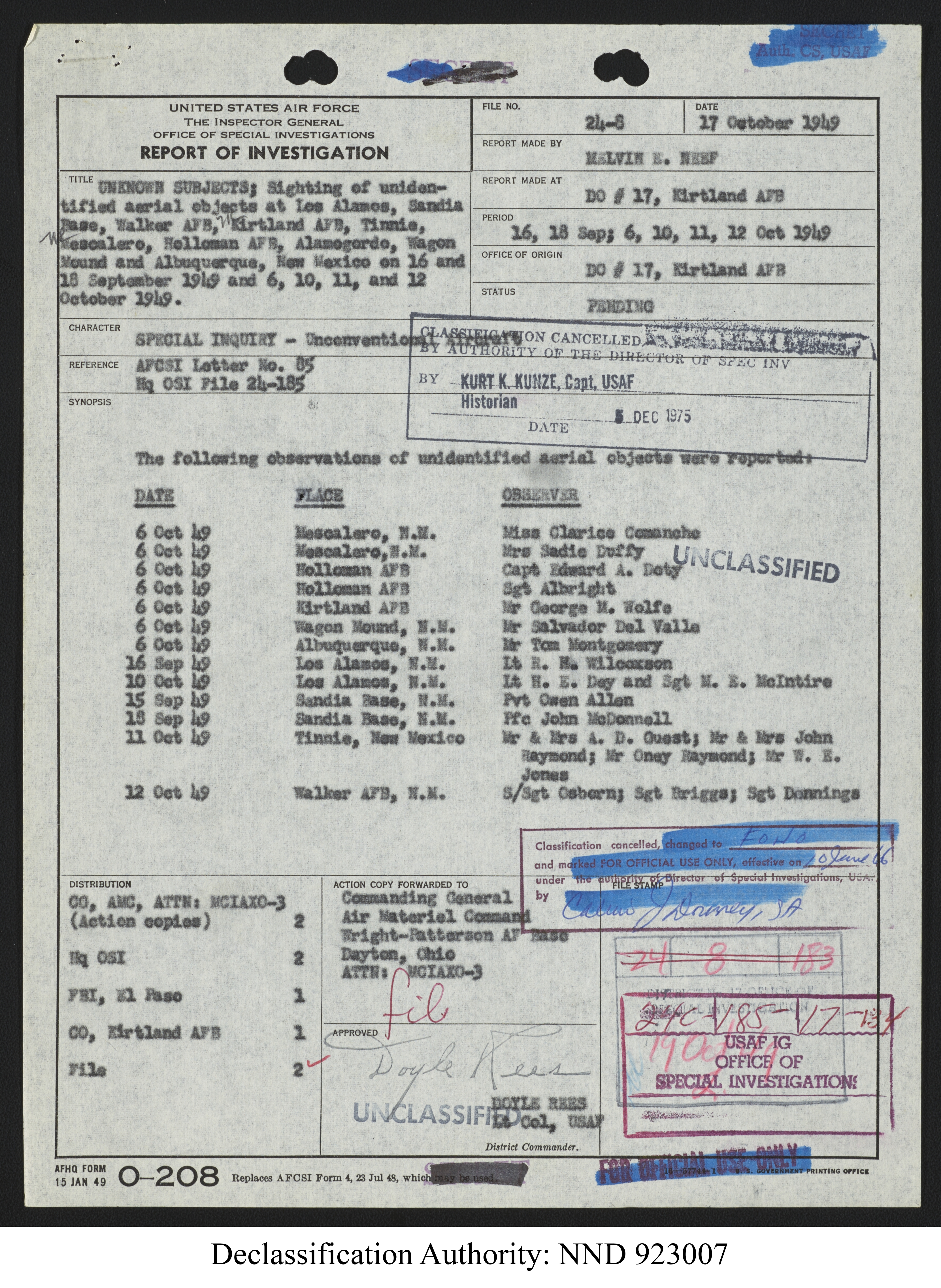 Browse and download declassified UAP investigation files