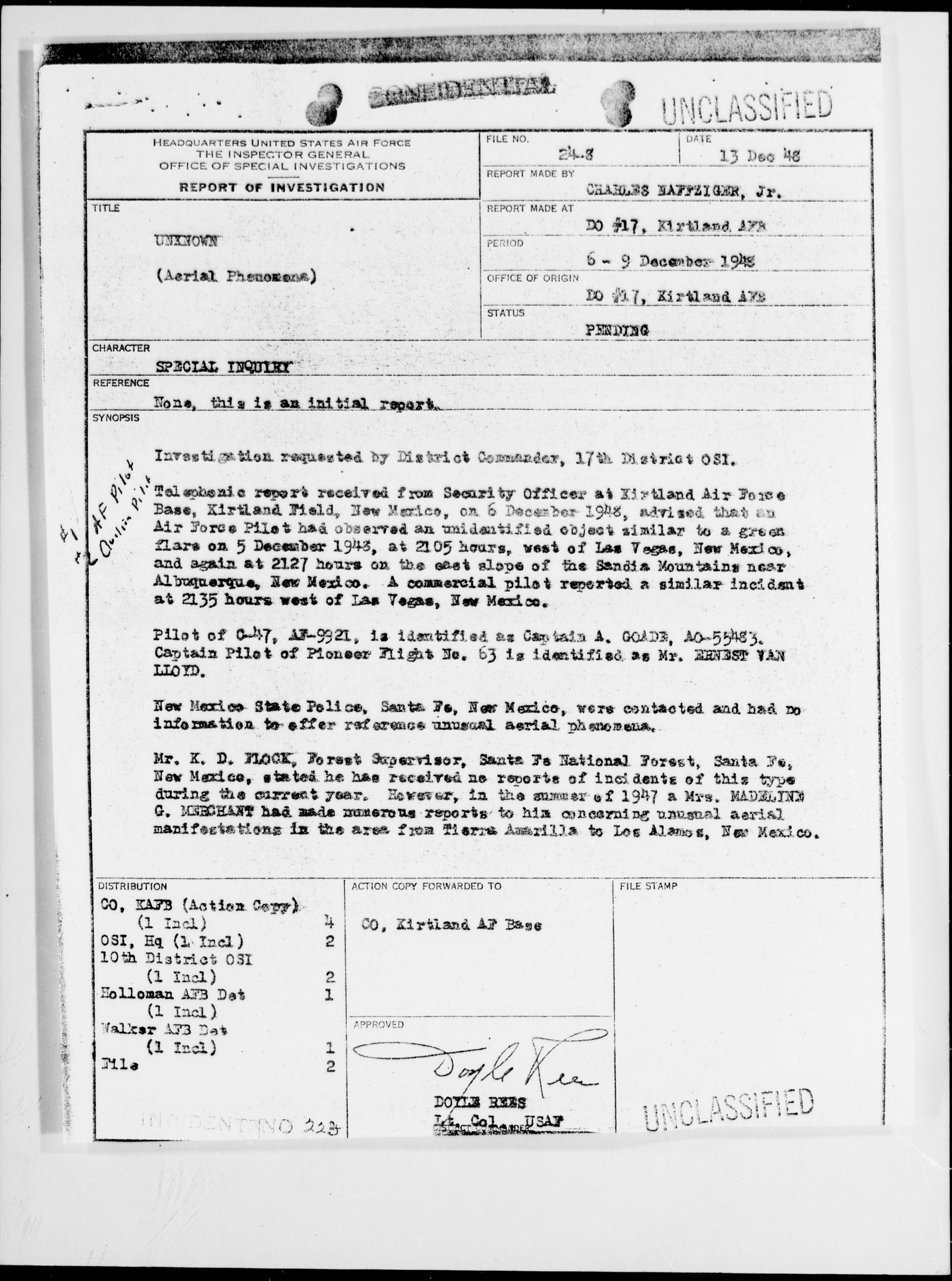 Browse and download declassified UAP investigation files