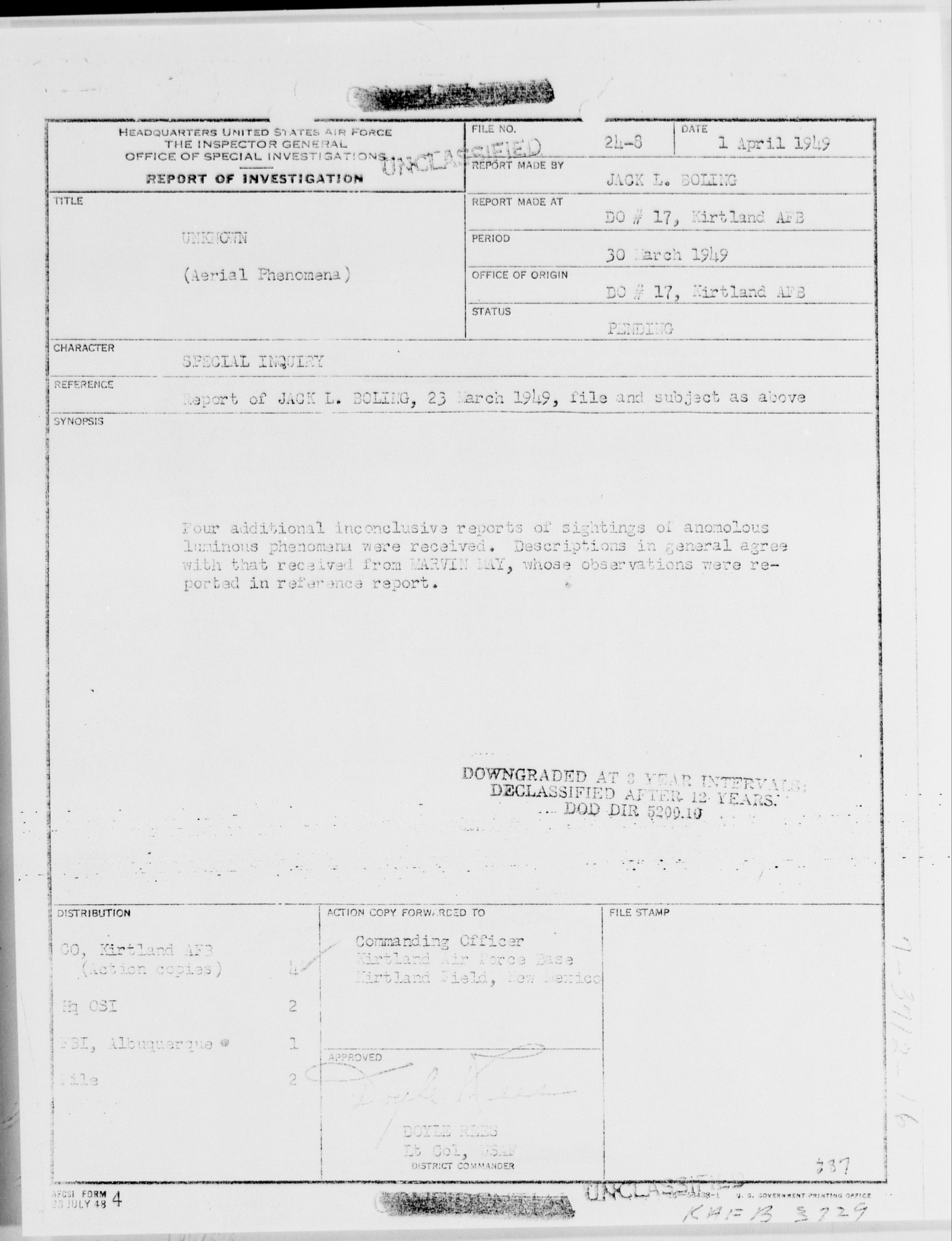 Browse and download declassified UAP investigation files