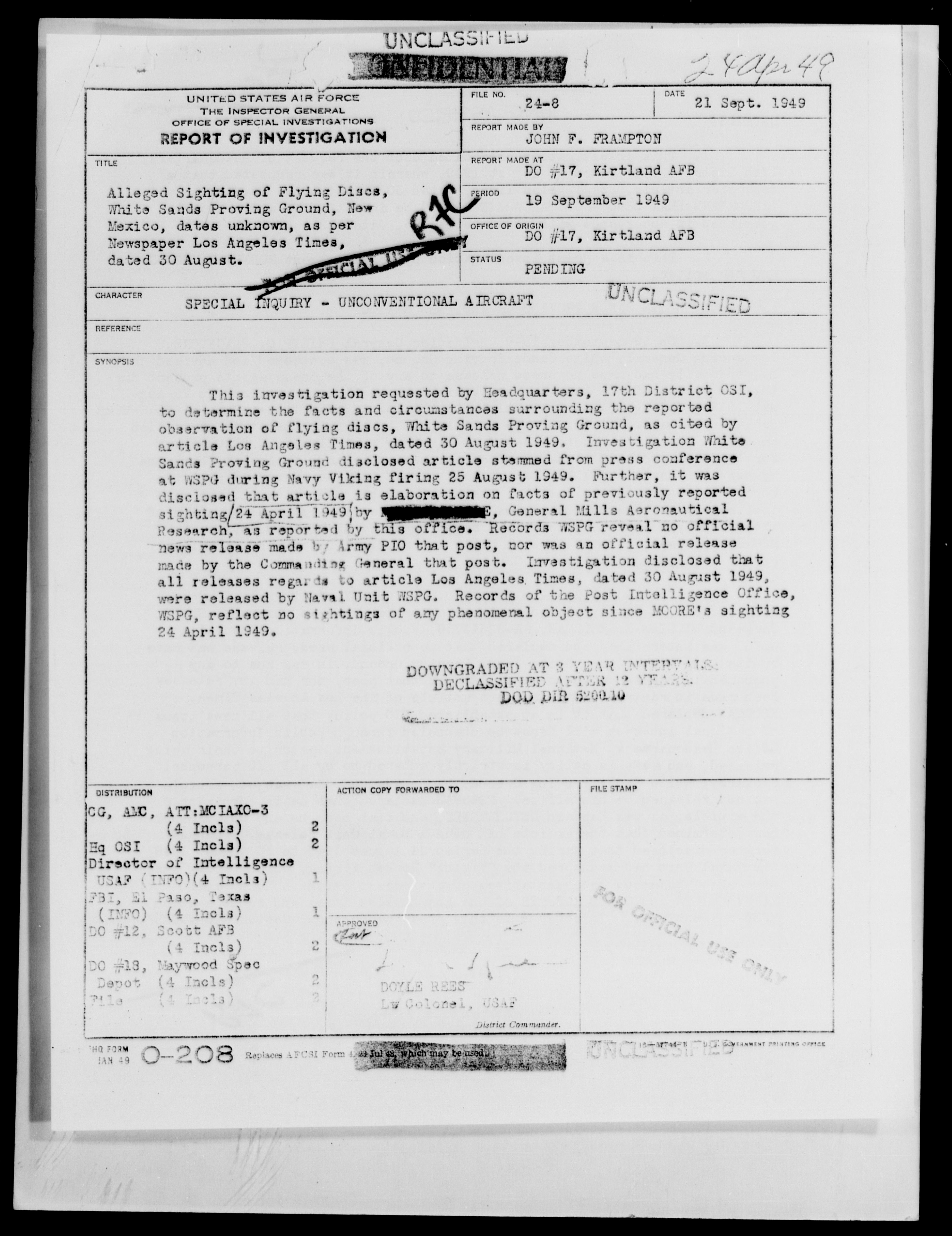 Browse and download declassified UAP investigation files