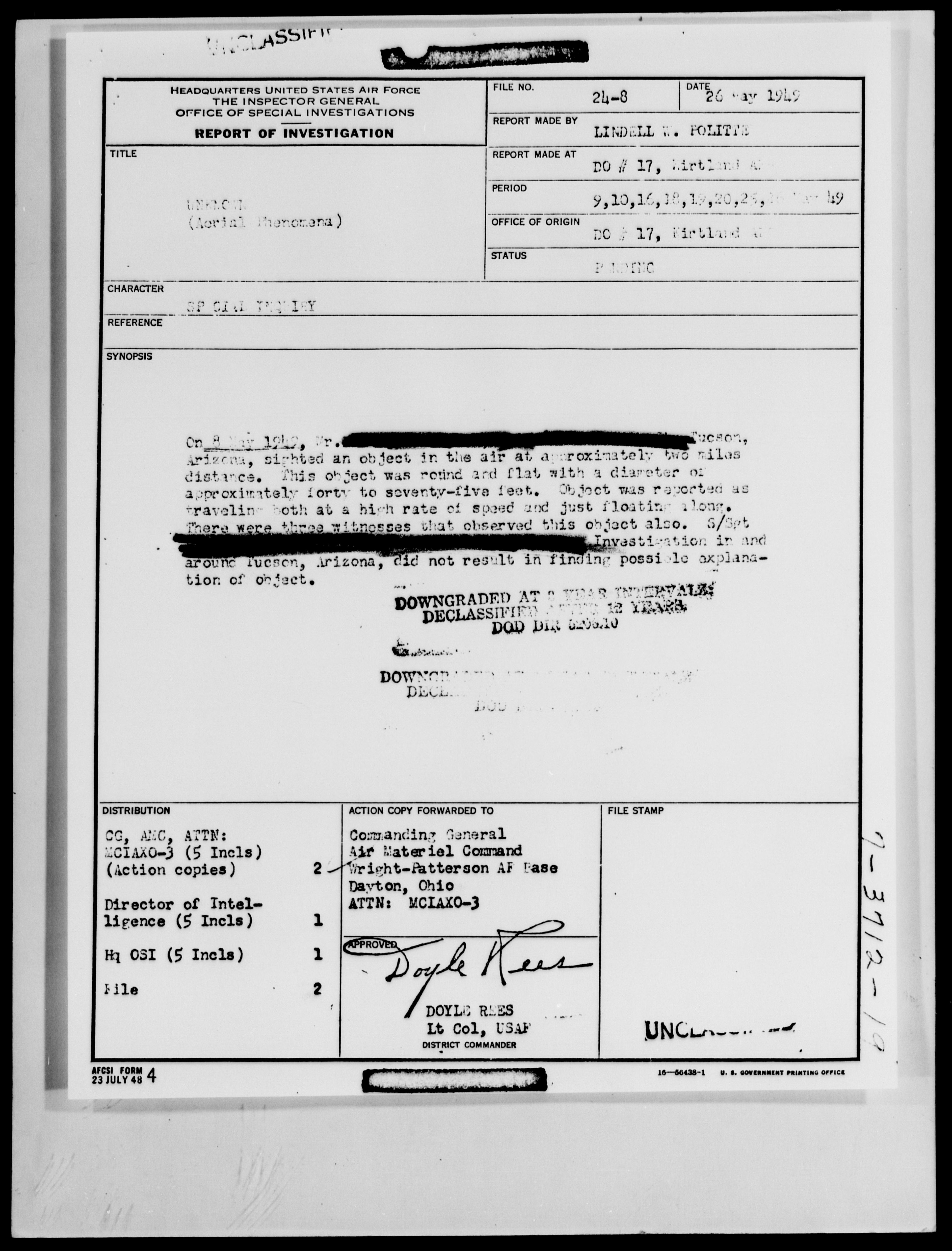 Browse and download declassified UAP investigation files