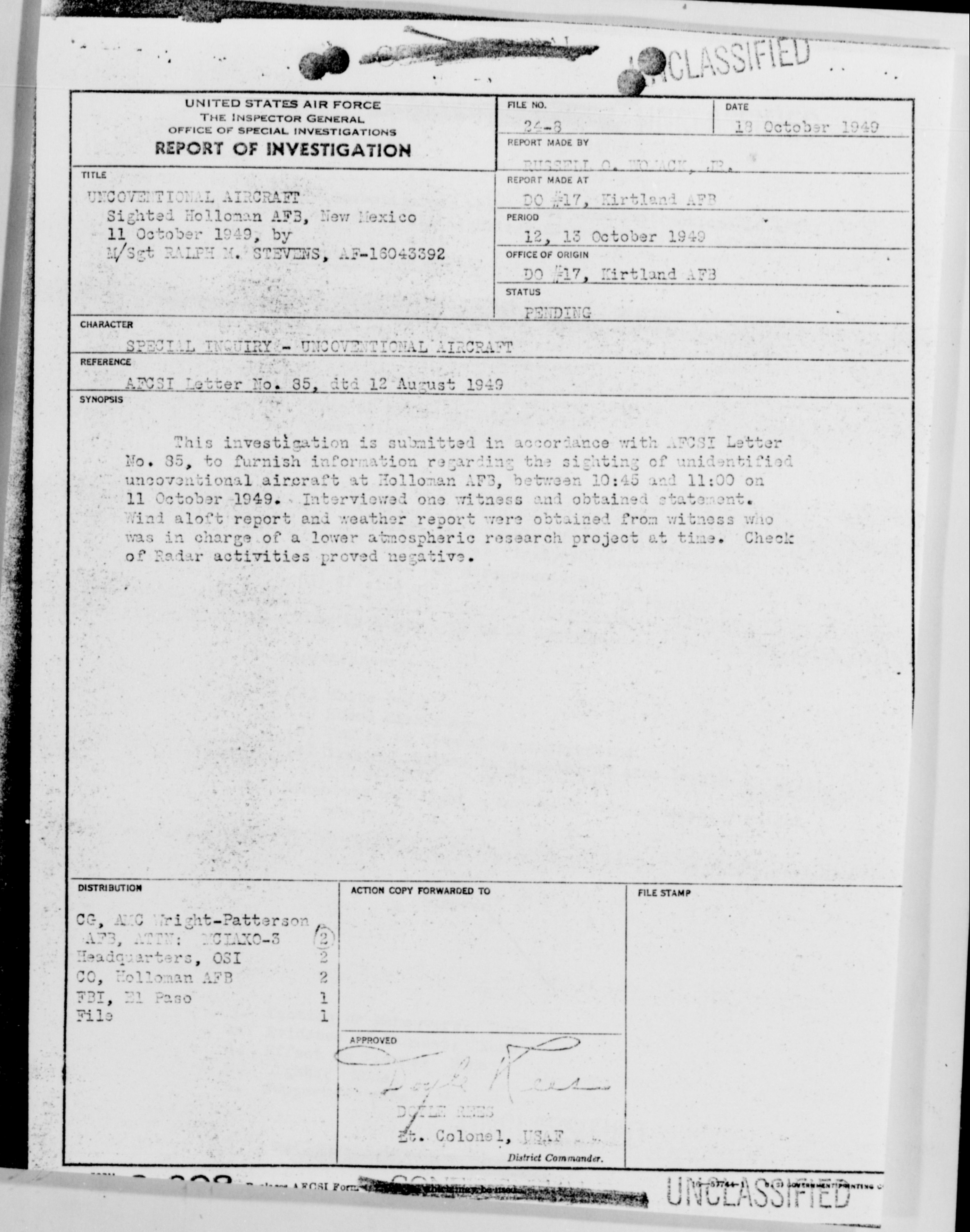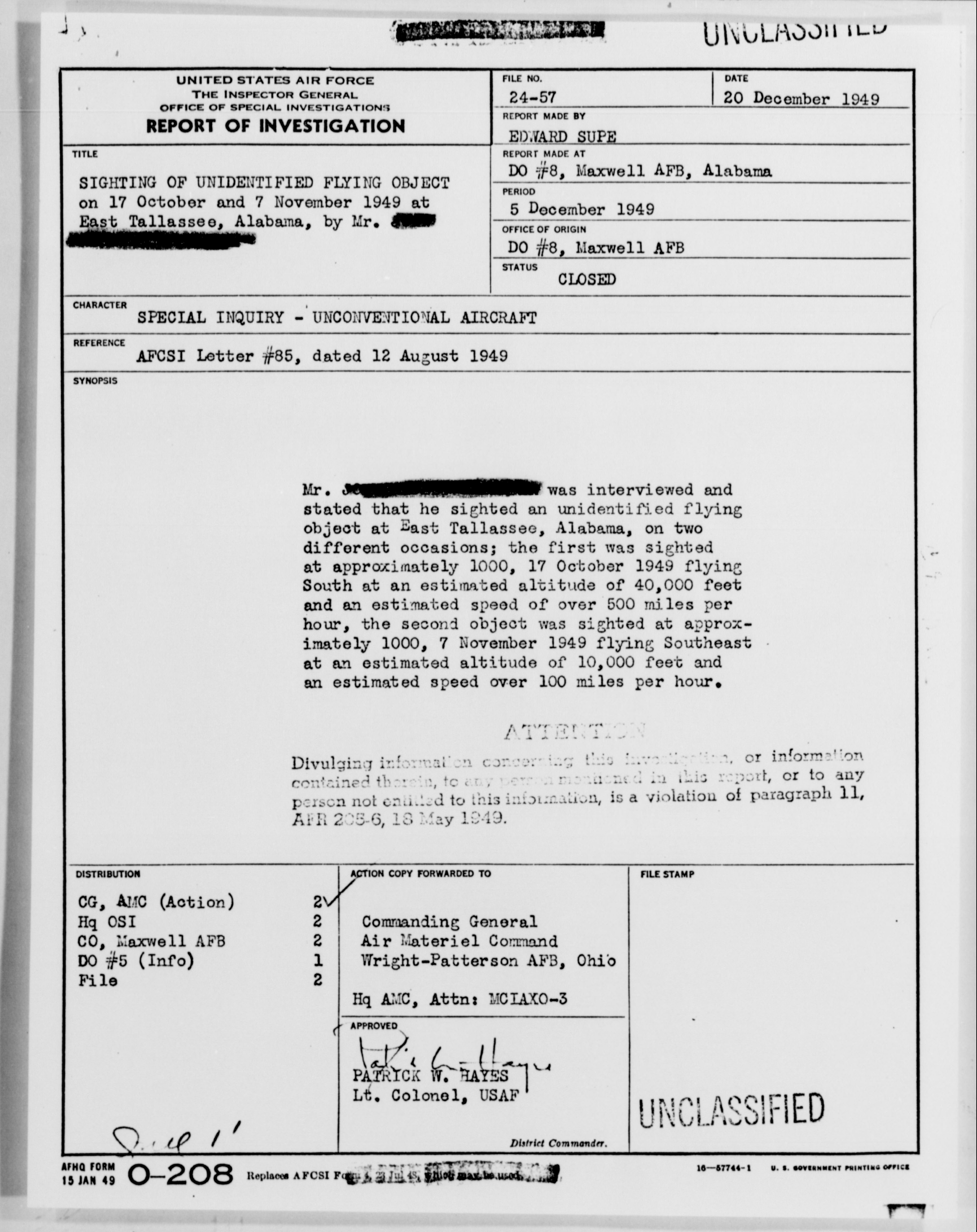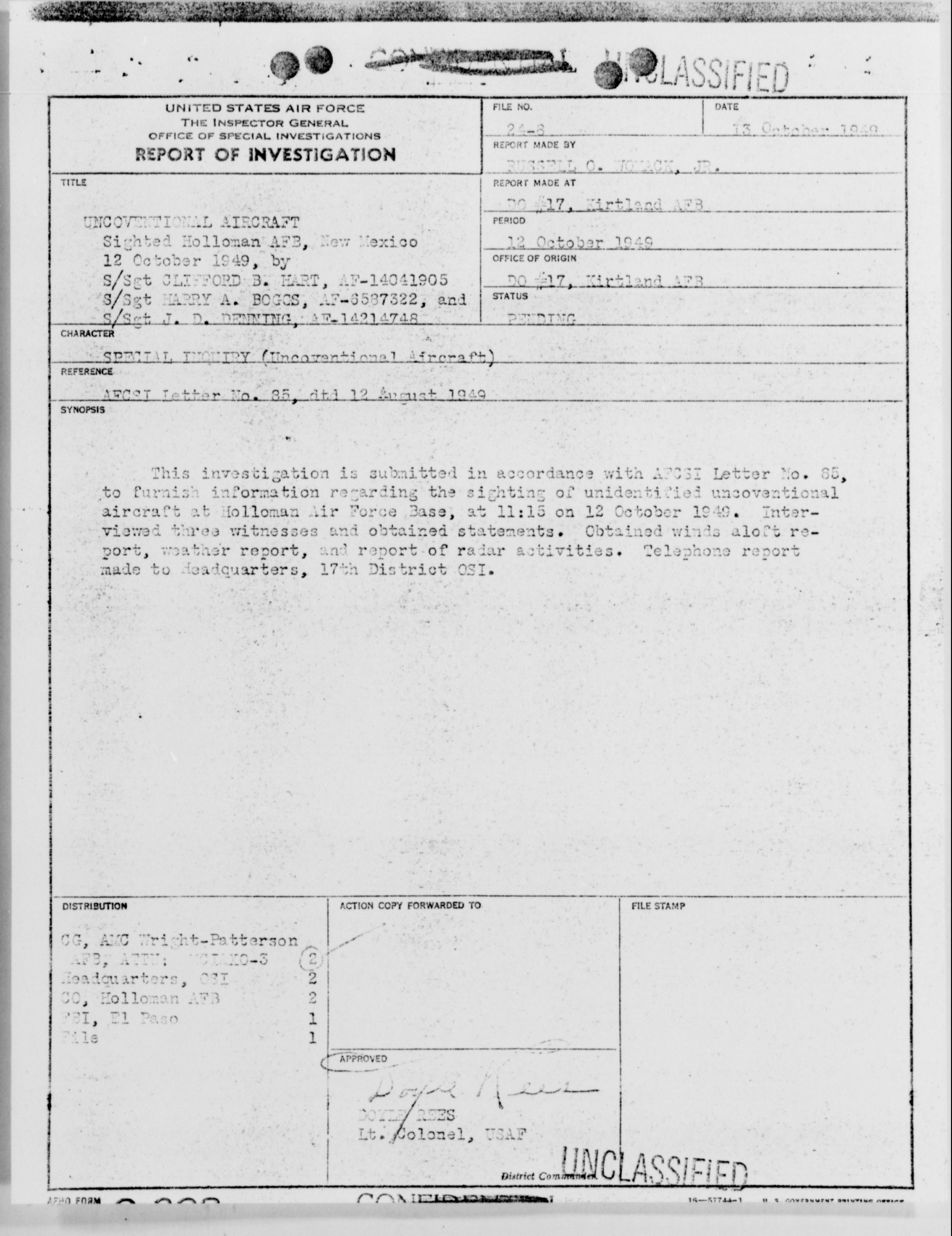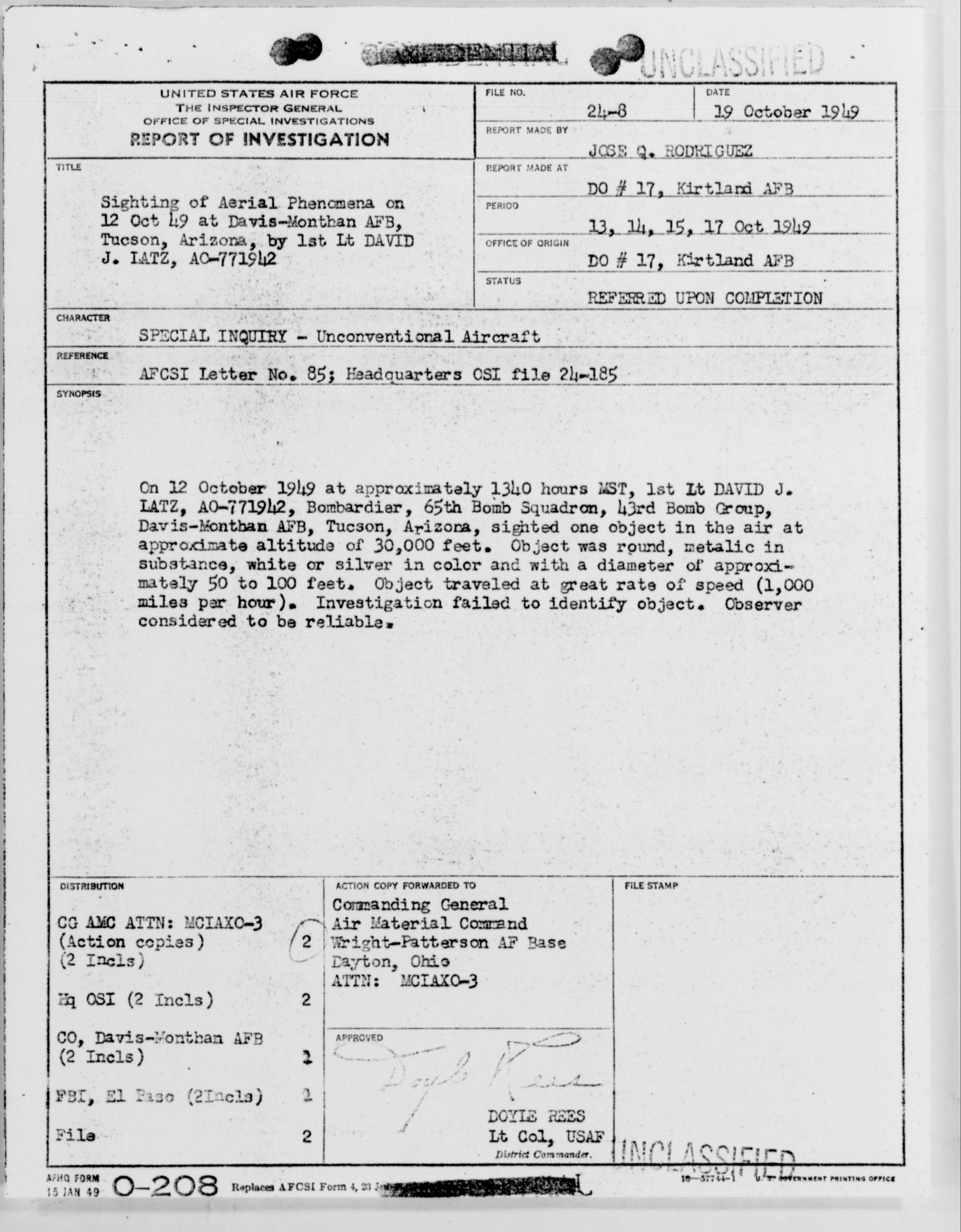 Browse and download declassified UAP investigation files
