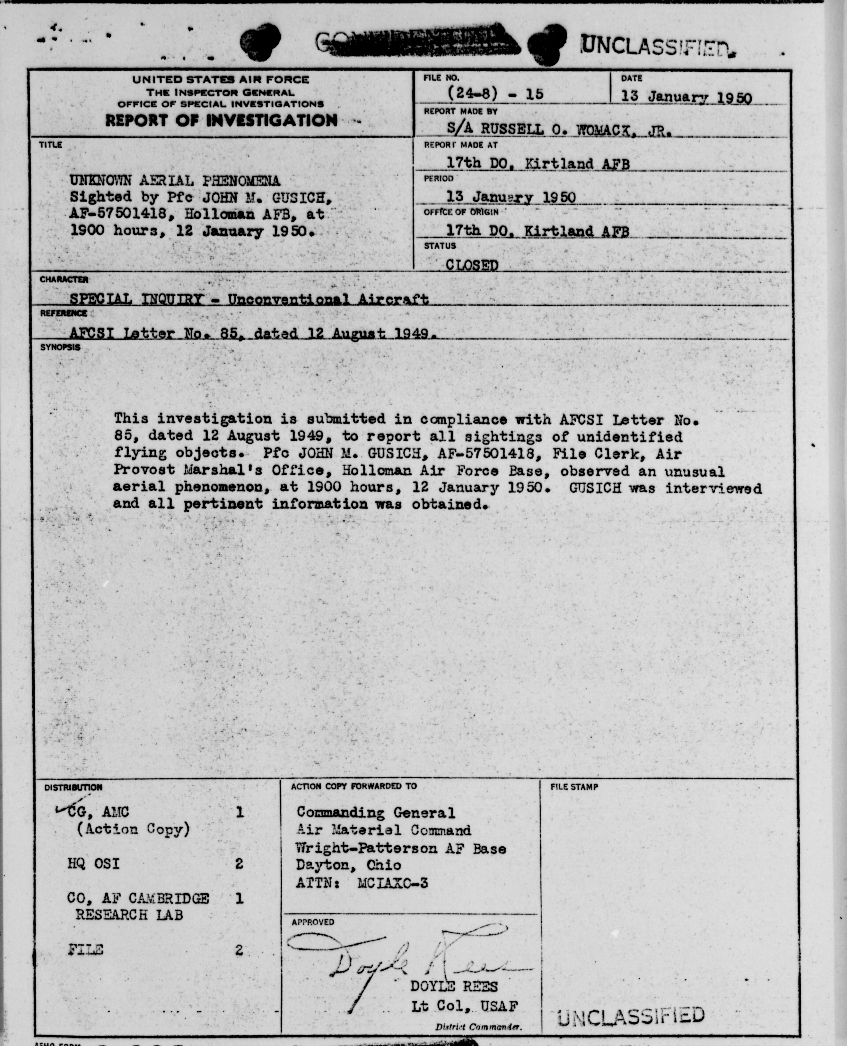 Browse and download declassified UAP investigation files