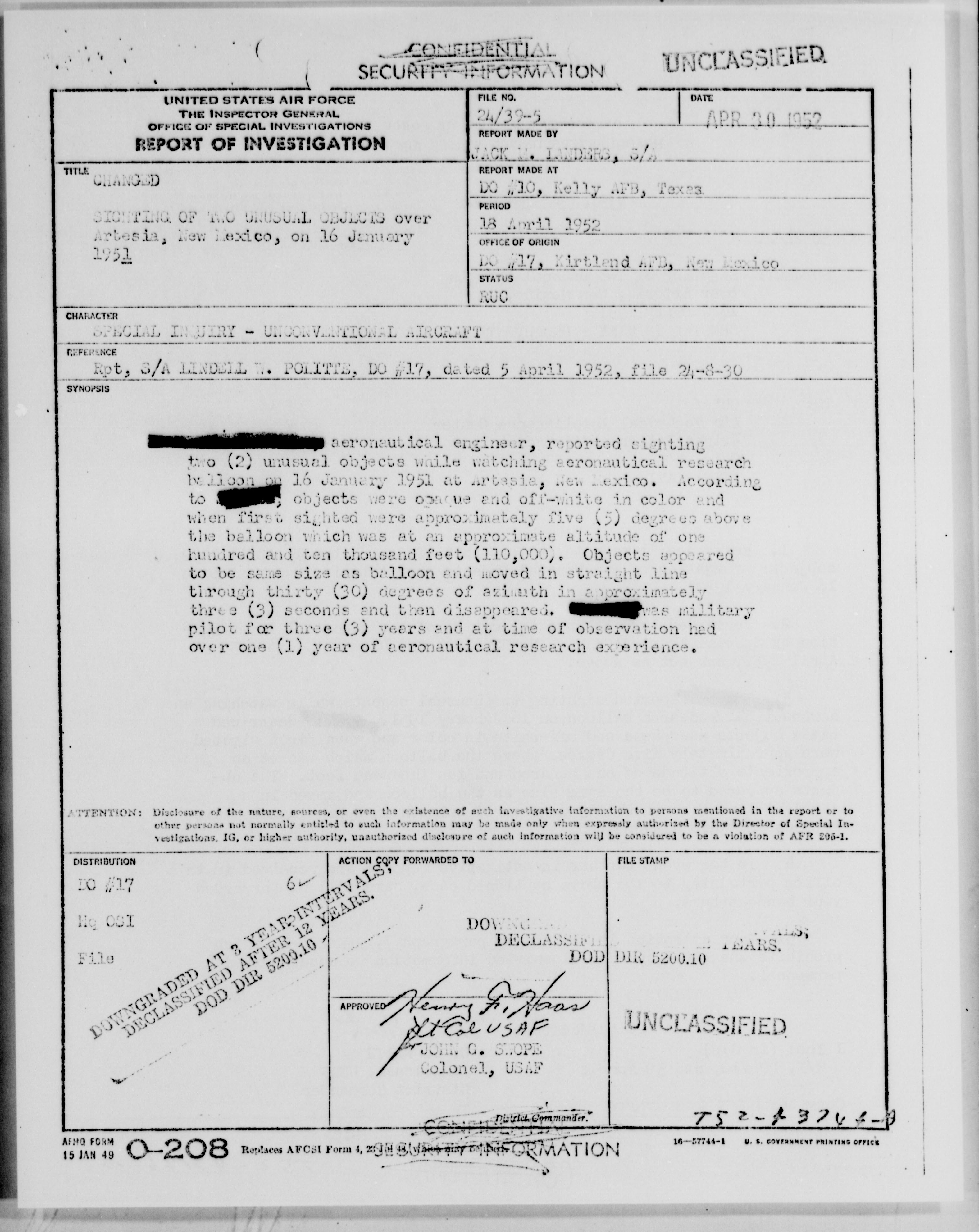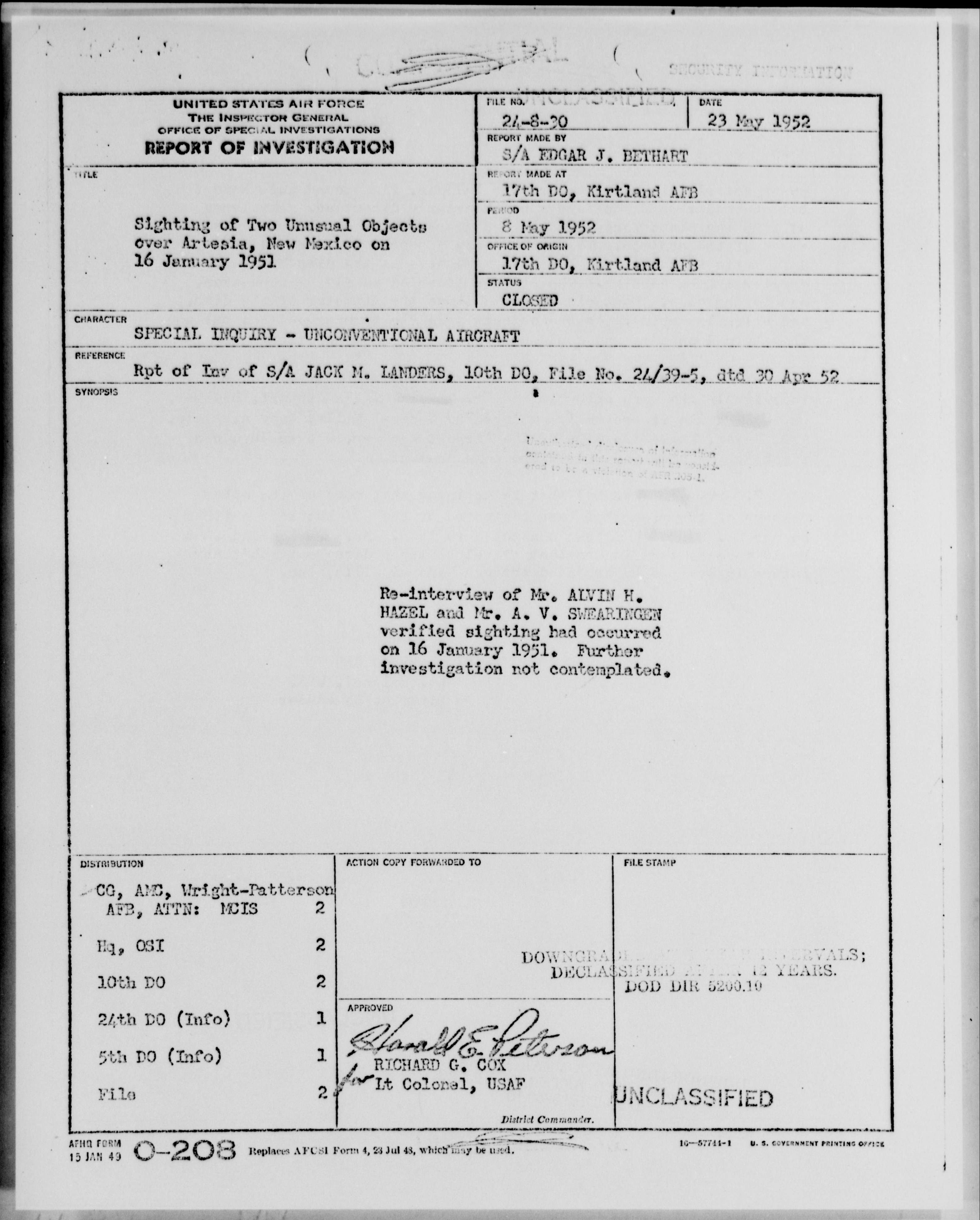 Browse and download declassified UAP investigation files